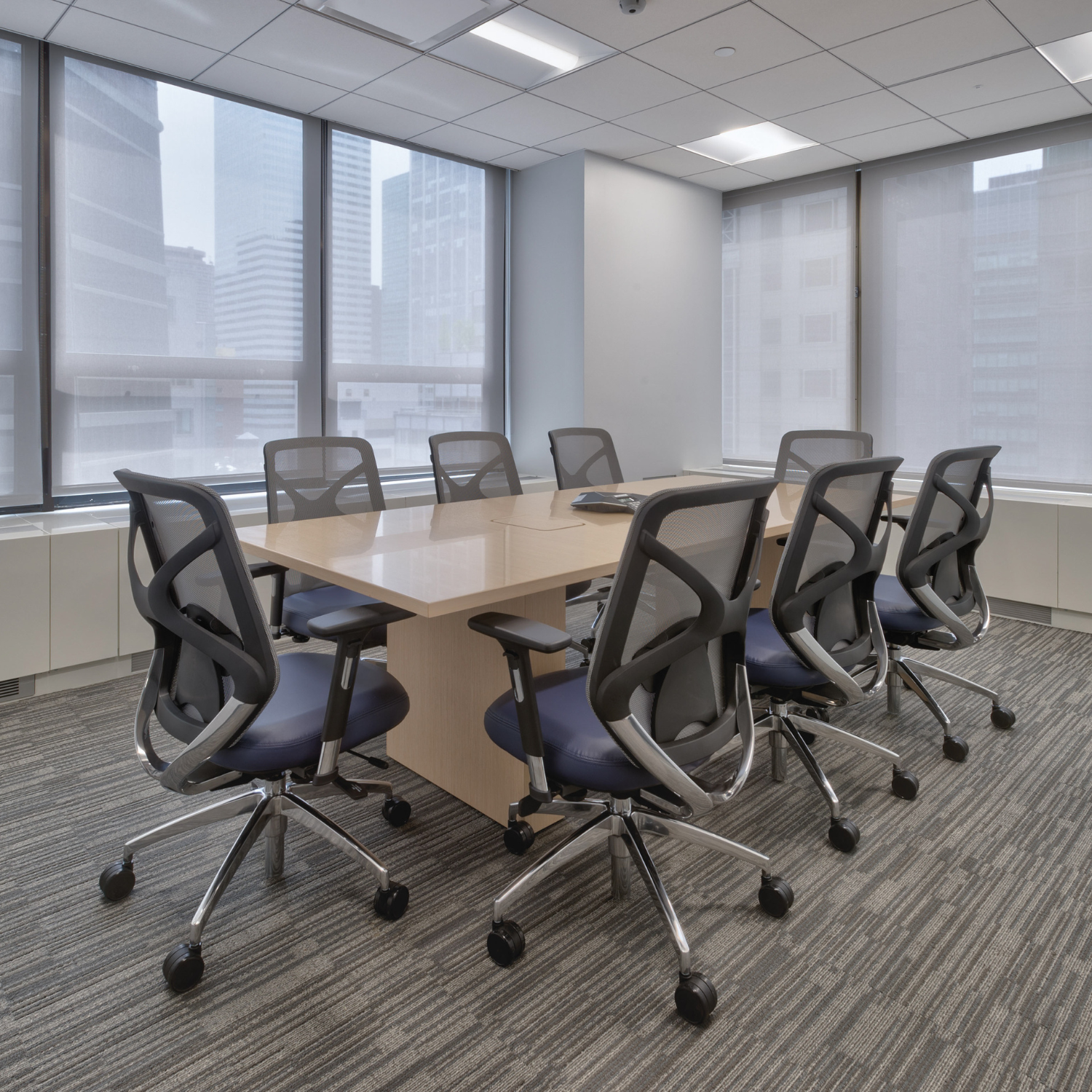 We designed a 7,200 sq ft Manhattan headquarters for a renowned NYC developer. Featuring glass walls, natural light, and a minimalist reception with stone and solid surfaces, the space reflects a sleek, modern aesthetic.